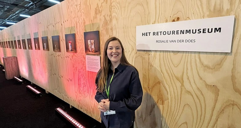 Fotograaf Rosalie van der Does exposeerde vorige week de fotoserie ‘Het Retourenmuseum' bij Empack in Evenementenhal Gorinchem. “Empack is een beurs die helemaal in het teken staat van verpakkingen: van materiaal en inpakmethodes tot verzending, duurzaamheid en efficiëntie-oplossingen. Tussen de vulmachines, dozenvouwers en plasticwrappers hangt dan ineens mijn werk. Heerlijk dat contrast. En dat op een muur van 13 meter lang. Een welkome aanvulling voor de beurs”, schrijft Rosalie van der Does bij onderstaande foto op social media.