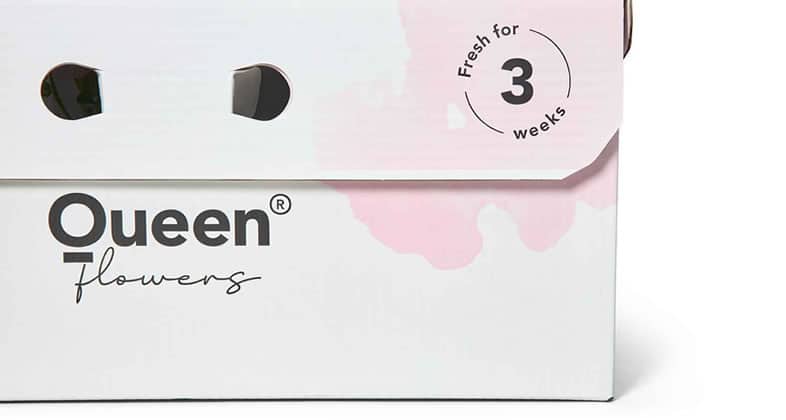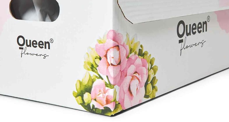 De duurzame verpakking met goed zichtbare graphics laat de merkidentiteit van Queen® Flowers duidelijk zien. Het buitenoppervlak is ideaal voor opvallende logo’s en zorgt voor een sterke visuele uitstraling, zowel online als in het schap in de winkel. Daarnaast kunnen gebruikte dozen eenvoudig in de kartoncontainer worden weggegooid, zodat ze gerecycled kunnen worden.