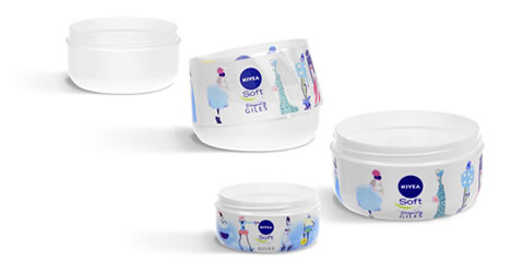 De combinatie van topdesign én uitvoeringstechniek geeft Nivea Soft opnieuw een unieke uitstraling en bevestigt de vertrouwde Nivea kwaliteit. De luxe verpakking is het resultaat van sleeving door Rivièra Product Decorations. Het bedrijf legt net als bij de vorige special editions een tweede huid om de bekende pot met de ronde vormen. De gave sleeve reikt tot onder zowel deksel als bodem. Type folie en een zorgvuldige sleevetechniek maken dat het bijzondere, kleurrijke design van Giles perfect tot zijn recht komt.