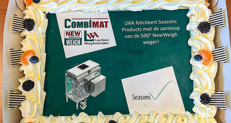 Laurijsen Weegautomaten (LWA) vierde onlangs een bijzonder moment bij Seasons Products in Groningen. Zij namen namelijk de 500ste NewWeigh weger af bij LWA. Een mooie mijlpaal waar ze bij LWA trots op zijn. Marc van Lierop van LWA mocht het gebak overhandigen aan Erwin Kaap van Seasons Products.