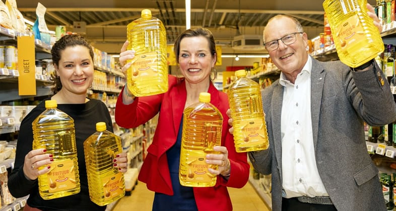 Marjolein Verkerk, hoofd MVO bij Jumbo Supermarkten: “We kiezen steeds vaker voor verpakkingen die beter te recyclen zijn. Bij onze ambitie om meer gerecycled plastic in te zetten bij frituurolieflessen, liepen we steeds tegen een bekend knelpunt aan: hoe zorg je voor een stabiele, voedselveilige en kwalitatief consistente stroom gerecycled PET plastic (RPET). Door het grote volume – de 3-literfles is een hardloper binnen het assortiment – levert deze aanpassing meteen een forse milieuwinst op. Daarnaast helpen we klanten op deze manier bij het maken van een duurzamere keuze.”